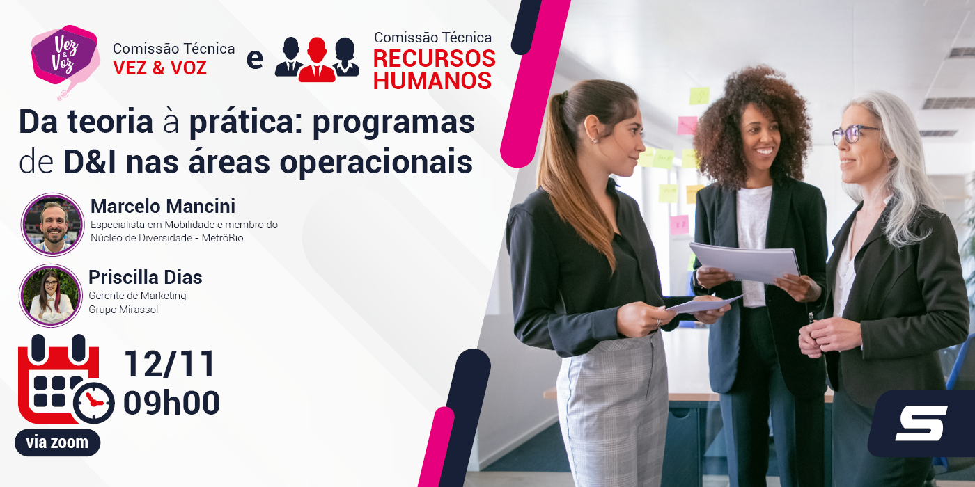 Pauta da reuniãoDa teoria à prática: programas de D&I nas áreas operacionais, apresentado por Priscilla Dias, Gerente de Marketing - Grupo Mirassol e Marcelo Mancini, Especialista em Mobilidade e membro do Núcleo de Diversidade - MetrôRio